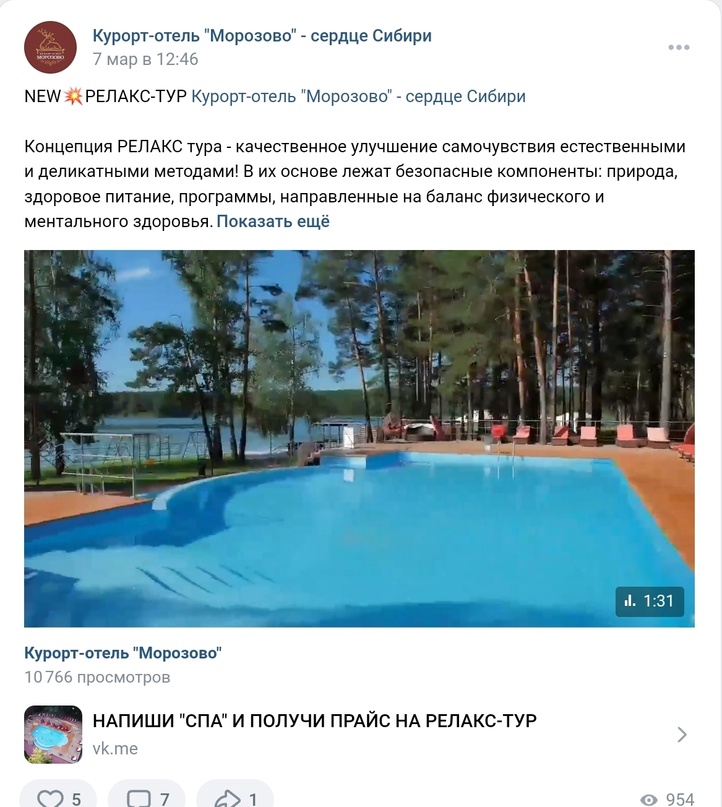 Также для удобства гостей был настроен чат-бот, который по кодовому слову «Отдых» активировал автоматическую отправку прайса, фото номеров и ссылку на сайт. Этой фнукцией люди с удовольсвием пользуются.